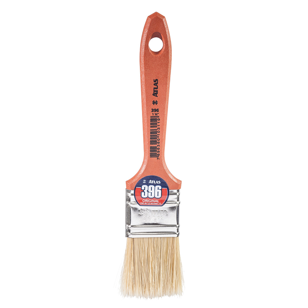 Trincha com cerdas brancas selecionadas. Indicada para verniz e stain.