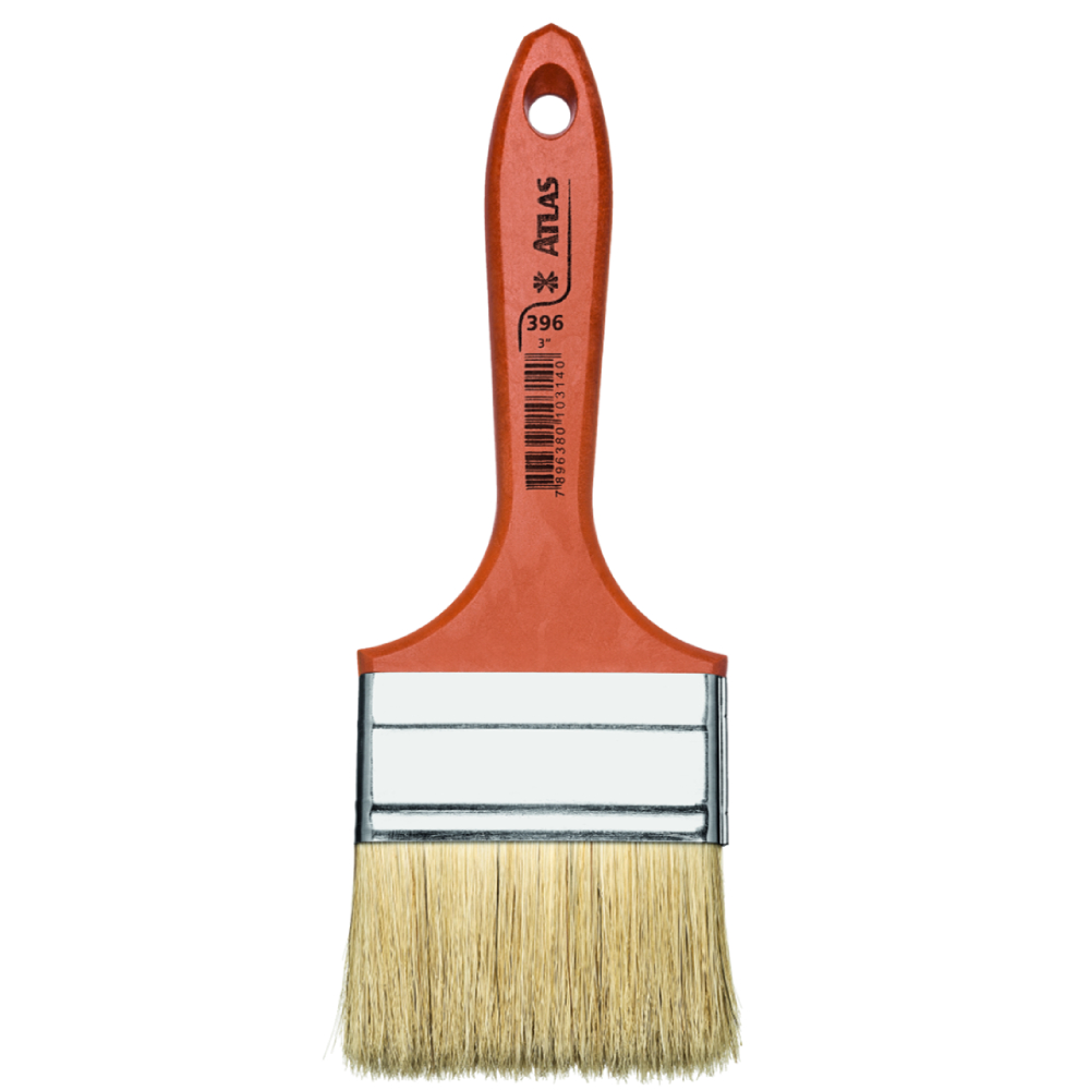 Trincha com cerdas brancas selecionadas. Indicada para verniz e stain.