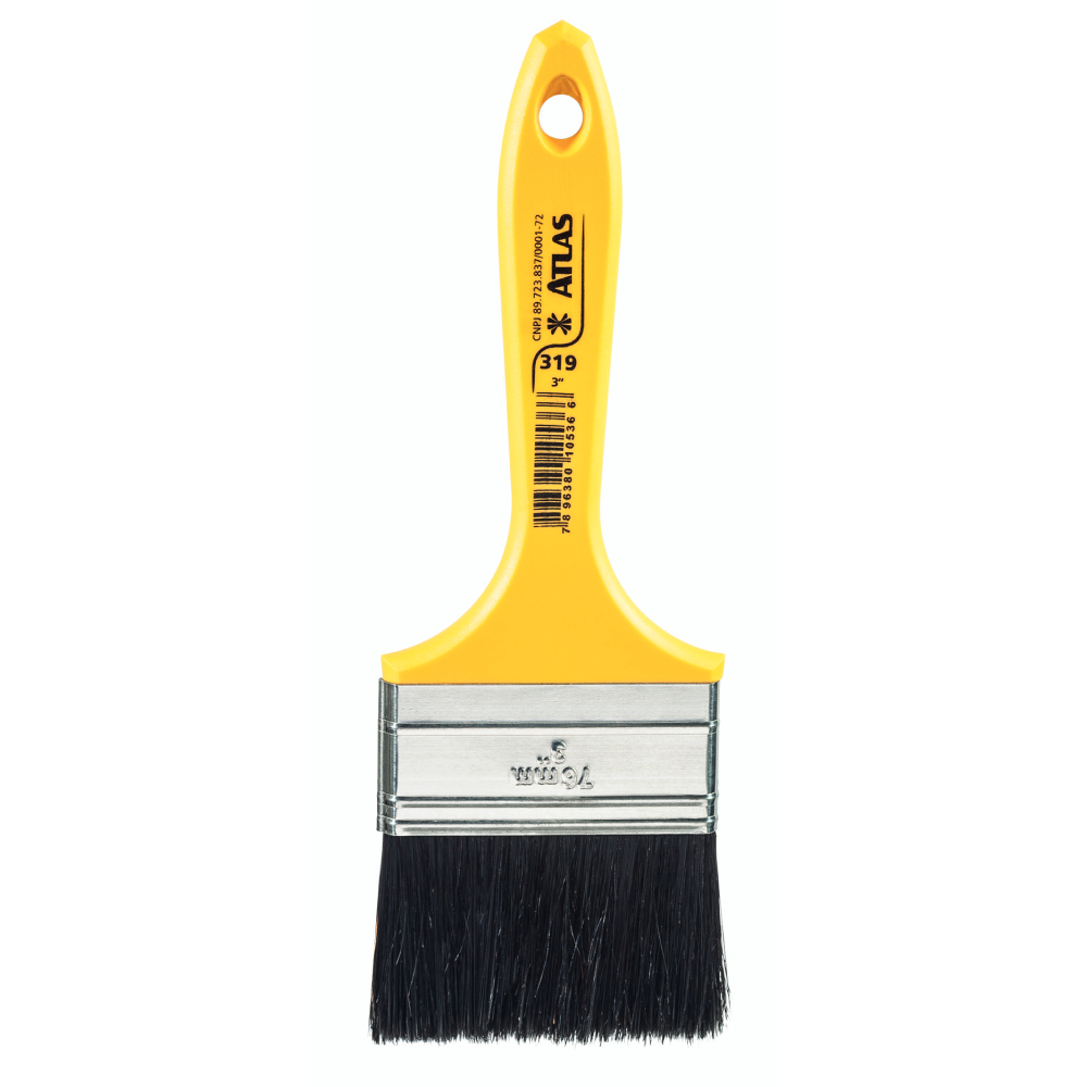 Trincha com cerdas pretas selecionadas. Indicado para pintura em geral com tintas esmalte sintético ou base água.