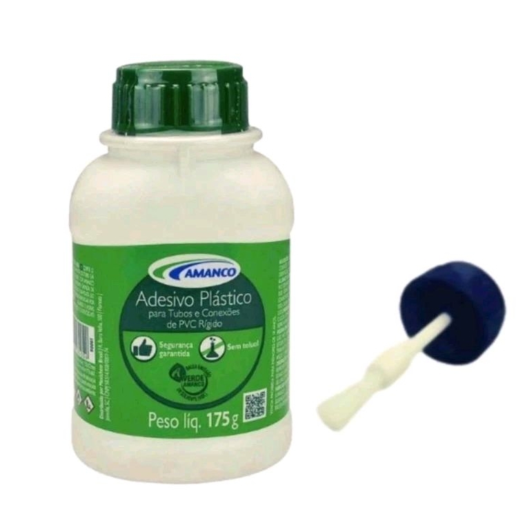 O adesivo plástico Amanco é ideal para fazer a colagem das tubulações em PVC de forma a garantir que não haja vazamentos. Para facilitar a sua aplicação, adesivo é disponível em bisnaga com ponta aplicadora. Produto não possui toluol em sua composição. Aplicação: Processo de soldagem das linhas Soldável Marrom para água Fria, Registros e Válvulas Soldáveis, Esgoto Serie Normal e Reforçada e linha Irriga LF (Ponta Bolsa Lisa). Características: A Cola Adesiva Amanco para Tubos e Conexões de PVC é aplicada em instalações prediais de água fria permanentes, embutidas em paredes ou aparentes em locais cobertos.