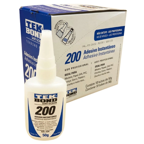 - Cianoacrilato Tekbond, como também é conhecido, é isento de solventes, não requer mistura, tem alta velocidade de cura e forte resistência.