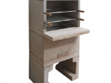 90 cm de largura, com placas refratárias. Capacidade para atender de 18 a 30 pessoas. Ideal para aparelhos giratórios de 6 espetos. Acessórios que acompanham o produto: grelha, porta-espeto, jogo de frente, canaletas, protetor de gordura e gaveta.
