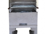 90 cm de largura, com placas refratárias. Capacidade para atender de 18 a 30 pessoas. Ideal para aparelhos giratórios de 6 espetos. Acessórios que acompanham o produto: grelha, porta-espeto, jogo de frente, canaletas, protetor de gordura e gaveta.