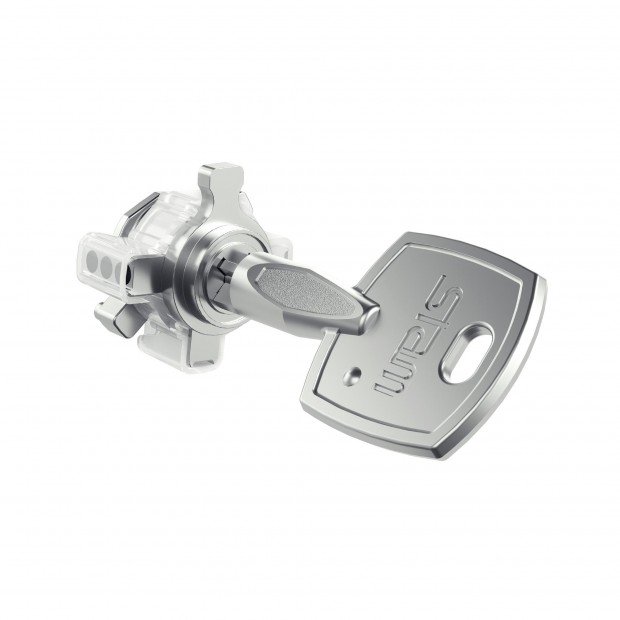 Cilindro niquelado, para fechadura do modelo 1940, da marca Stam.