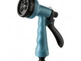 Esguicho pistola 7 funções, possui gatilho que permite abrir, fechar e regular o fluxo d´água além de 7 tipos de saída de jatos d´água. Com trava para fácil manuseio do produto e conexão tipo engate rápido. O esguicho 7 funções é utilizado para irrigar jardim, gramados ou hortas domésticas.