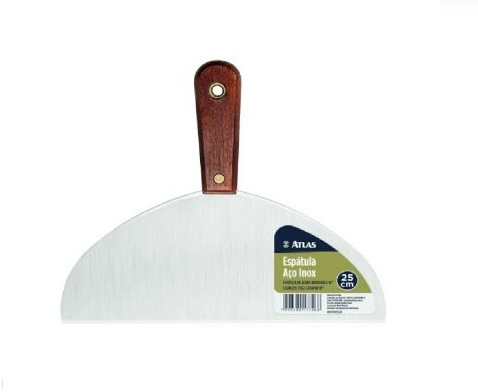 Espátula com lâmina de aço inox e cabo de madeira tratada. Ideal para raspagem e aplicação de gesso, massa corrida e massas de textura.