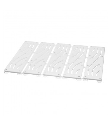 Estrado para box de plástico polipropileno (PP). Fixação com ventosas de PVC. Ótima aderência. Vazado para não acumular água nem sujeira. Ideal para áreas úmidas.