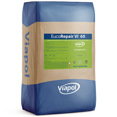 EucoRepair VI 60 é uma argamassa para reparo monocomponente, formulado à base de cimento Portland, fibras, agregados selecionados, aditivos especiais e agente inibidor de corrosão de armadura.