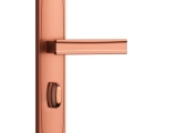 Fechadura para aplicação em banheiro na cor Rose, modelo Classic 55 3300, da marca Stam. Indicada para quem procura alta qualidade e sofisticação tanto nos acabamentos como na máquina.