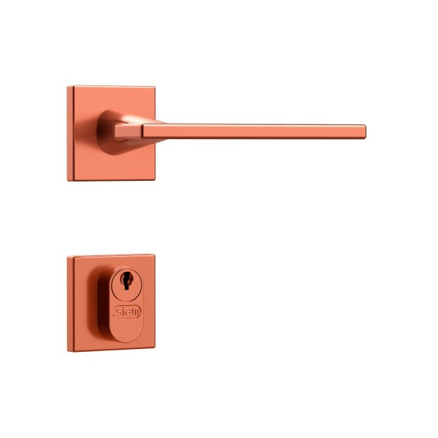 Fechadura para aplicação externa na cor Rose, com roseta quadrada, modelo Classic 40 3000, da marca Stam. Indicada para quem procura alta qualidade e sofisticação tanto nos acabamentos como na máquina.