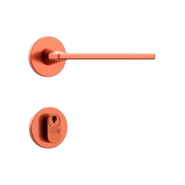 Fechadura para aplicação externa na cor Rose, com roseta redonda, modelo Classic 40 3000, da marca Stam. Indicada para quem procura alta qualidade e sofisticação tanto nos acabamentos como na máquina.