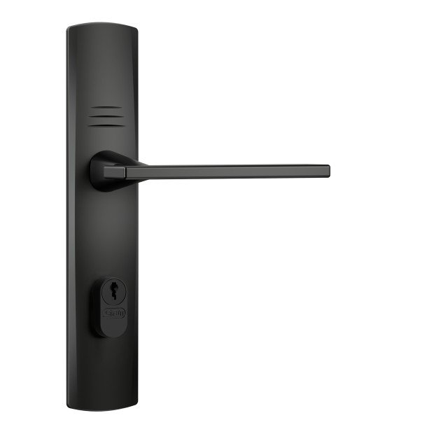 Fechadura para aplicação externa na cor Black Fosco, modelo Classic 55 3000, da marca Stam. Indicada para quem procura alta qualidade e sofisticação tanto nos acabamentos como na máquina.