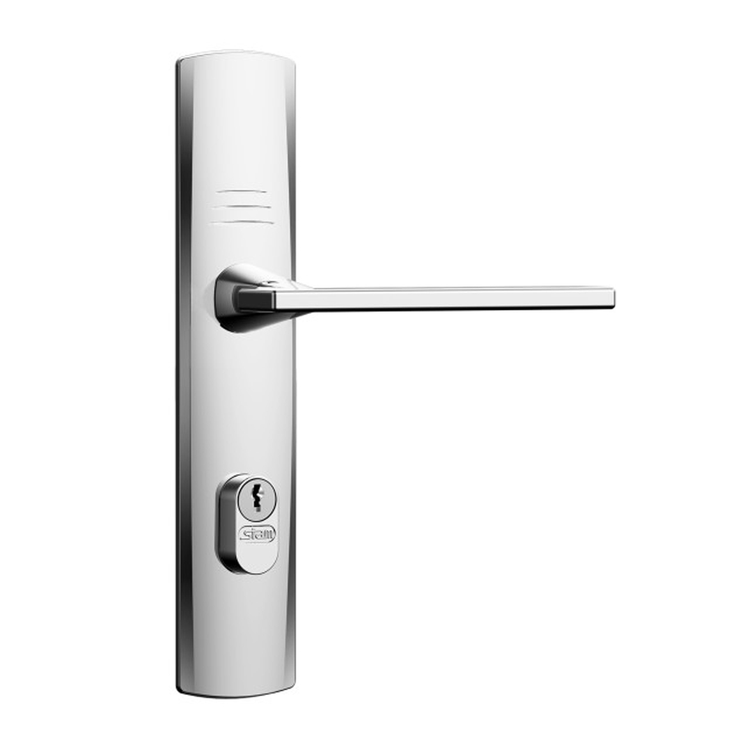 Fechadura para aplicação externa na cor Cromado, modelo Classic 55 3000, da marca Stam. Indicada para quem procura alta qualidade e sofisticação tanto nos acabamentos como na máquina.