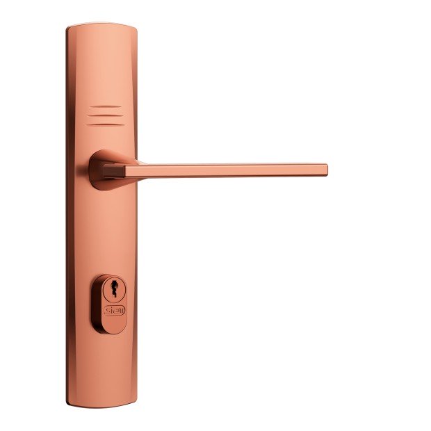 Fechadura para aplicação externa na cor Rose, modelo Classic 55 3000, da marca Stam. Indicada para quem procura alta qualidade e sofisticação tanto nos acabamentos como na máquina.