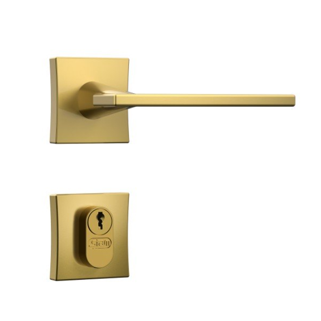 Fechadura para aplicação externa na cor Gold, modelo Classic 55 3000 com roseta quadrada, da marca Stam. Indicada para quem procura alta qualidade e sofisticação tanto nos acabamentos como na máquina.