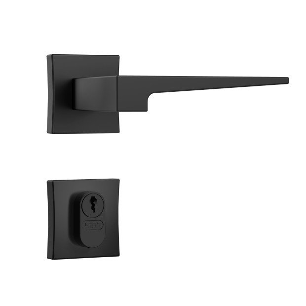 Fechadura para aplicação externa na cor Black Fosco, modelo Classic 55 3200 com roseta quadrada, da marca Stam. Indicada para quem procura alta qualidade e sofisticação tanto nos acabamentos como na máquina.