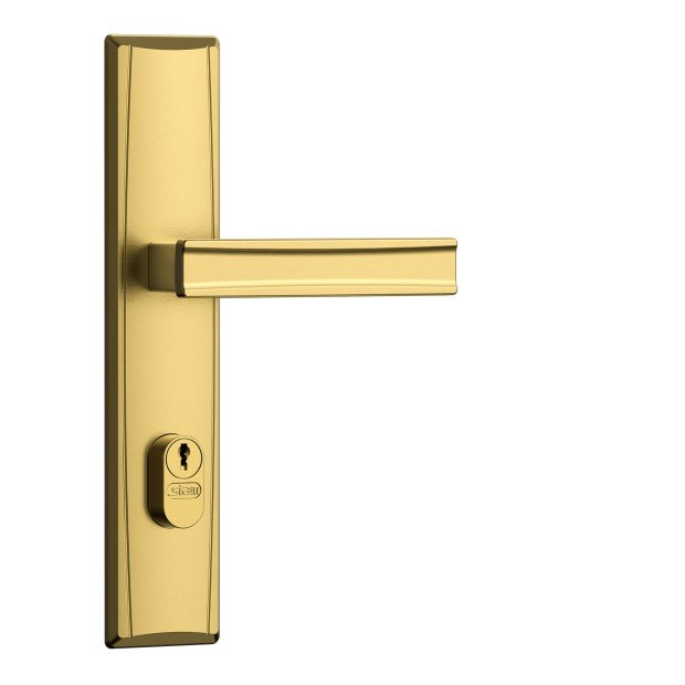 Fechadura para aplicação externa na cor Gold, modelo Classic 55 3300, da marca Stam. Indicada para quem procura alta qualidade e sofisticação tanto nos acabamentos como na máquina.