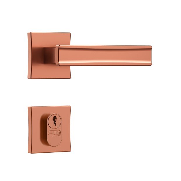 Fechadura para aplicação externa na cor Rose, modelo Classic 55 3300 com roseta quadrada, da marca Stam. Indicada para quem procura alta qualidade e sofisticação tanto nos acabamentos como na máquina.