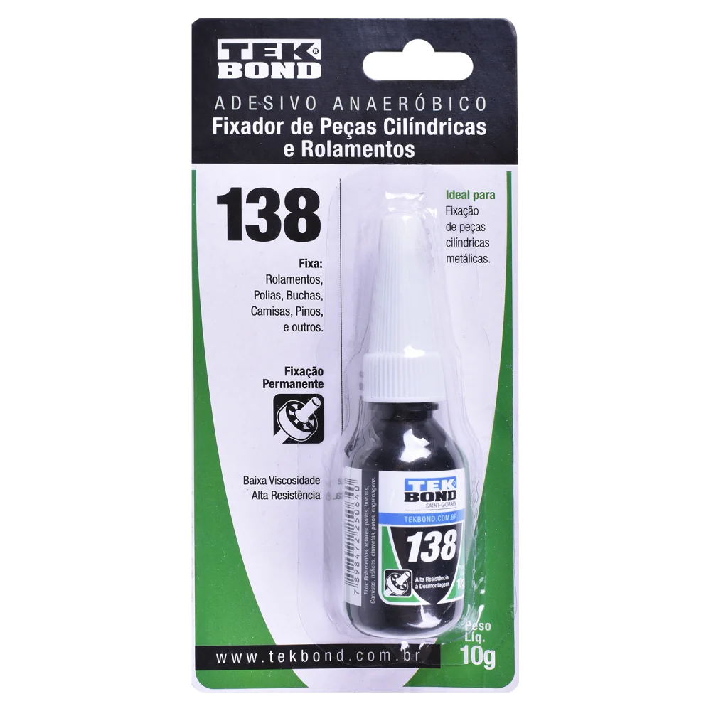 O Adesivo 138 é ideal para fixação de peças cilíndricas como buchas, rolamentos, hélices, em porcas, parafusos e prisioneiros em geral entre outros que necessitem de alta resistência à desmontagem.