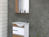 Possui puxadores retos no padrão prata fosco, prateleira de vidro no espelheiro e pia própria em mármore sintético, tornando o conjunto ainda mais bonito.