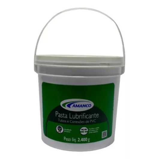 Conheça a Pasta Lubrificante Com Bico Aplicador 2,4kg Amanco. Utilizada para lubrificar o anel de vedação para que o encaixe entre tubos e conexões seja feito com maior facilidade. A pasta lubrificante da Amanco é uma mistura de óleo vegetal, agente saponificante e emulsionantes, sendo de alta qualidade e fácil aplicação. É um produto desenvolvido especialmente para lubrificar tubos e conexões de PVC com sistema de Junta Elástica. Escolha o melhor para o seu projeto, escolha Amanco!