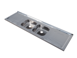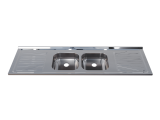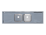 Pia de cozinha em aço inoxidável com 180cm de comprimento, com cuba dupla central.