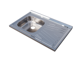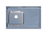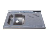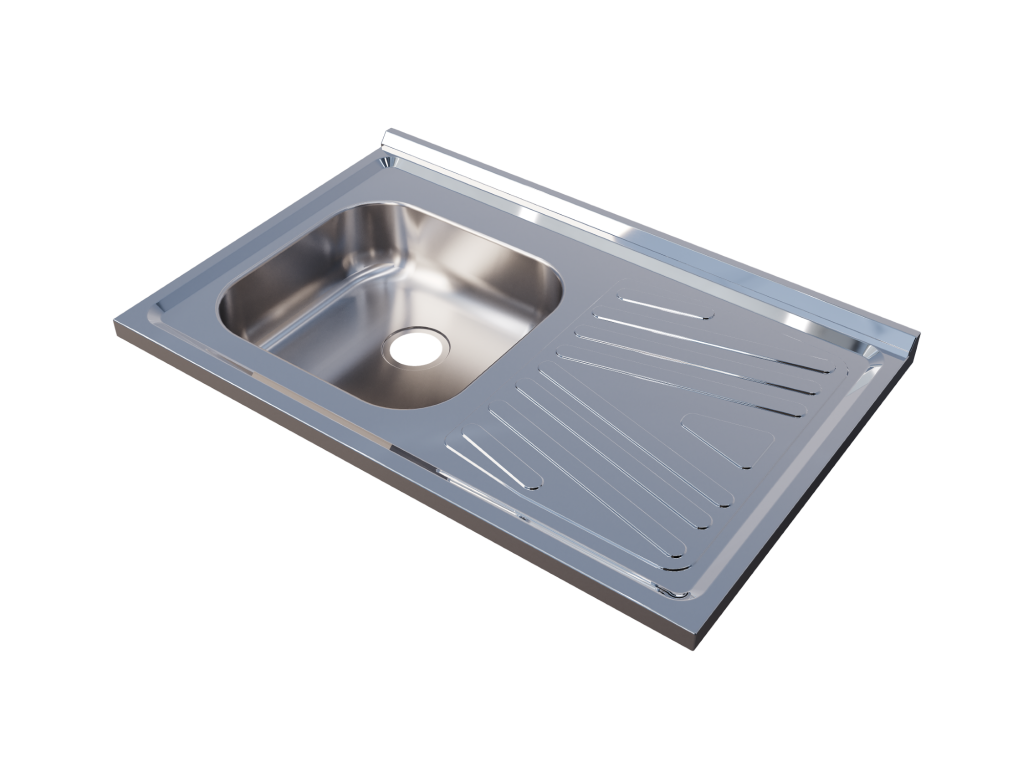 Pia de cozinha em aço inoxidável com 80cm de comprimento, com opção de cuba deslocada à esquerda ou à direita.