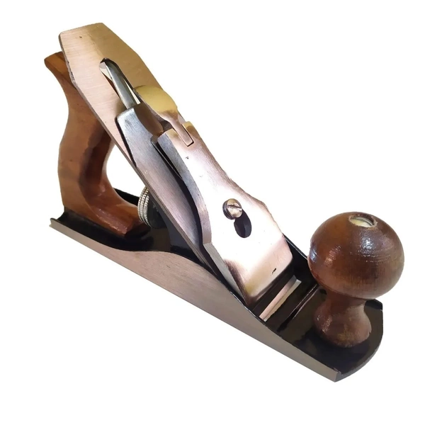 Um kit de ferramentas manuais como chaves de fenda, alicates martelos, marretas, serrotes. entre outros. é essencial para facilitar os reparos de sua casa. - Desenvolvida para fazer acabamento e desbastes em madeira. - Compacto, pode ser aplicado em lugares de difícil acesso utilizando apenas uma mão. - Possui lâmina em aço carbono, alças resistentes, base de ferro fundido usinadas com precisão, tampa em aço para acoplamento preciso e dispositivo especial para a geometria do parafuso. - Comprimento: 21cm. - Largura da lâmina: 6cm. - Plaina Número 4.