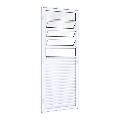 Porta de alumínio para quem busca economia sem abrir mão de qualidade. Feita em processo produtivo exclusivo e inovador. Com basculante e vidro já instalado.