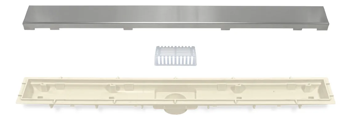 Os Ralos Lineares MultiCerto são conhecidos por sua versatilidade, elevando o requinte e a proteção do ambiente. É ideal para áreas internas e externas, como box de banheiros, lavanderias, sacadas, chuveiros externos e onde mais se fizer necessário escoamento de água. Possui o tamanho de 90cm de comprimento e 4,5 de largura, seu diferencial é evidenciado em sua instalação que o deixa totalmente invisível no ambiente, ficando visível apenas a tampa em inox como acabamento. A base do ralo é projetada com uma inclinação de 1°, o que favorece o escoamento da água, além disso, ao aplicar o adesivo fixador PU 40 durante a instalação, o ralo oferece proteção extra contra infiltrações através das abas projetadas para tal desempenho. Seu diâmetro nominal para saída da água é de 40mm e pode ser instalado em tubulações ou caixas sifonadas. Possui peneira retentora que assegura a proteção contra insetos, torna a limpeza mais prática e elimina a possibilidade de entupimentos e odores desagradáveis devido ao acúmulo de sujeira. Para realizar a limpeza diária, possui uma mini ventosa que facilita a remoção da tampa.