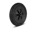 Roda completa com pneu maciço, sendo ideal para carrinho de mão na construção civil, carrinhos plataforma, entre outros, desde que a medida do furo sejam compatíveis. Com capacidade de carga: 100kg.
