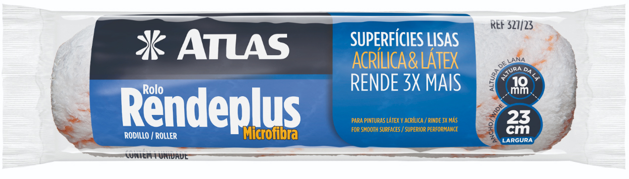 Rolo multiuso de 23cm de microfibra para pintura gerais. Manta com 10mm de altura. Ideal para pintura em superfícies lisas. Use com tintas acrílica, látex (pva) e esmalte.