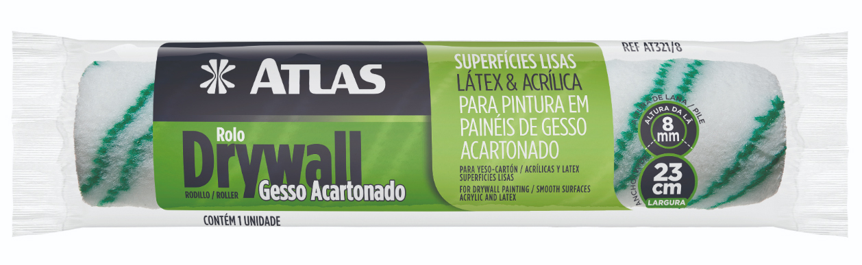 Rolo de 23cm de poliamida 66 trançada de 8mm de altura. Indicado para pintura em paredes lisas (drywall/gesso acartonado). Fino acabamento.