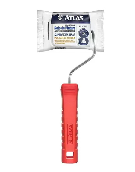 Rolo Anti Respingo Economico 5 cm da Atlas é ideal para tintas acrílicas, látex (PVA) em superfícies lisas.