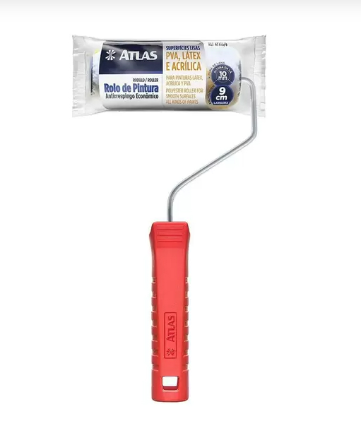 Rolo Anti Respingo Economico 9 cm da Atlas é ideal para tintas acrílicas, látex (PVA) em superfícies lisas.