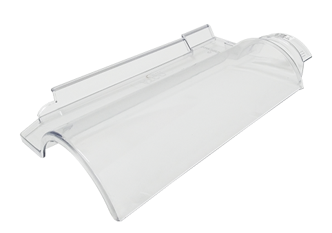 Telha transparente medindo 42x25cm. São necessárias 12 telhas por m2.