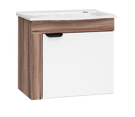 O banheiro em madeira Jasmim 50, da Cozimax, é ideal para dar um toque de sofisticação aos ambientes pequenos. Jasmim 50 possui ainda puxadores em aço eletrogalvanizado, exclusivos da Cozimax e o novo lavatório curvo.
