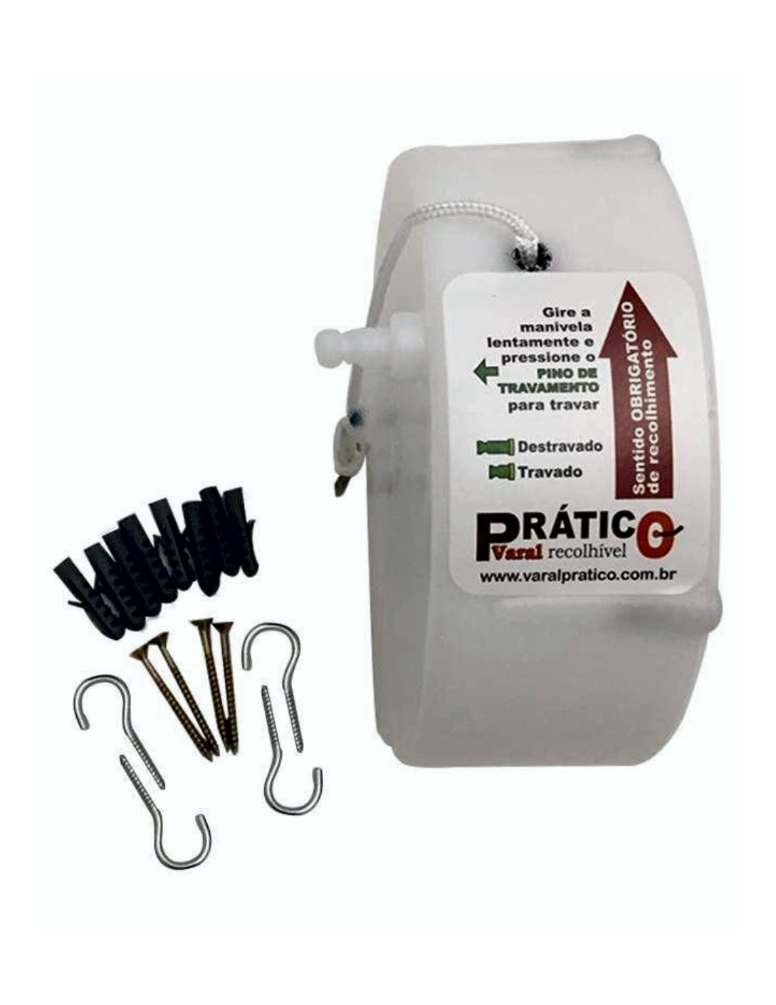 Varal Recolhível Retrátil De Parede 30Metros Branco