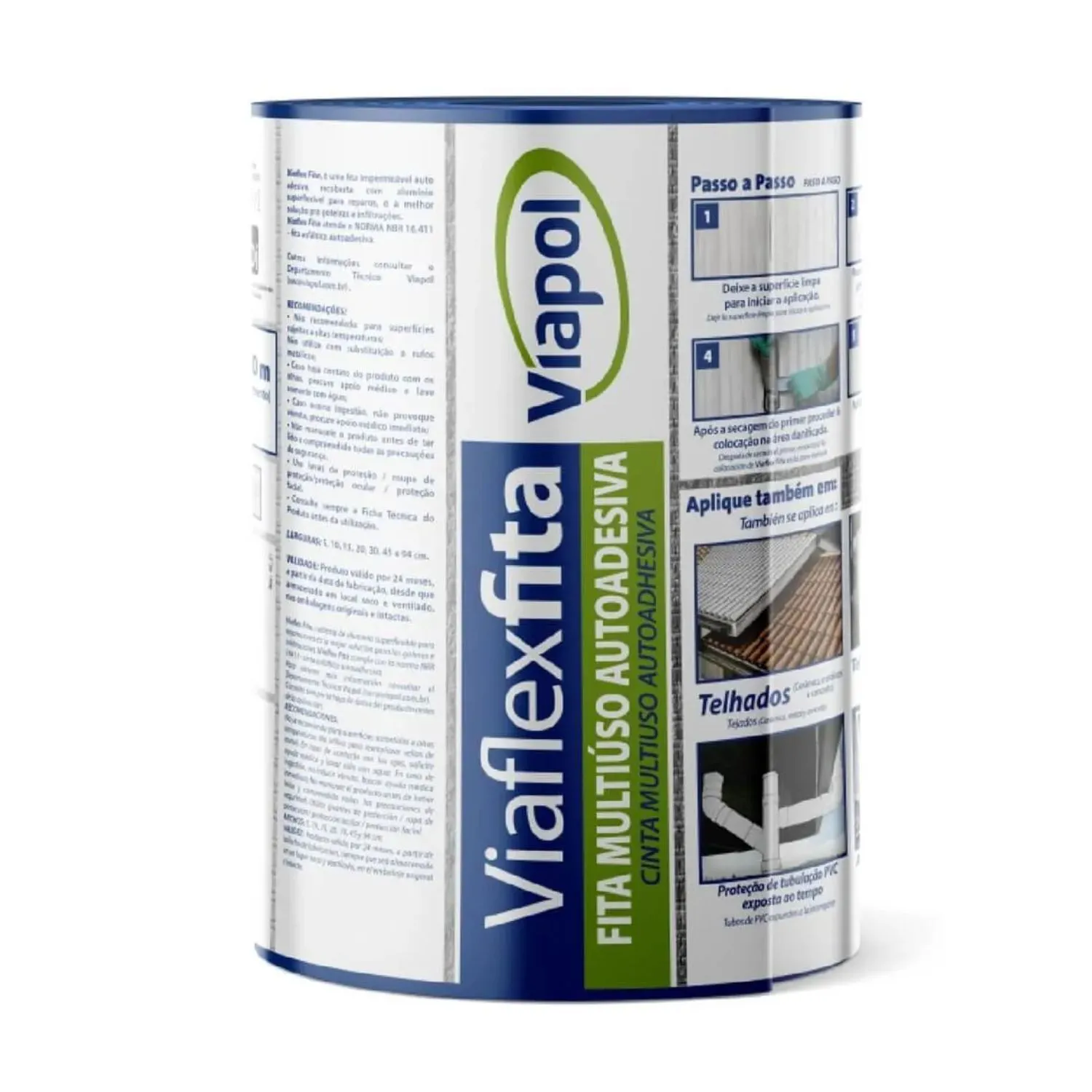Viaflex Fita é uma fita impermeável auto-adesiva composta de uma camada de adesivo asfáltico, recoberta com uma lâmina de alumínio flexível e protegida por um filme plástico. Material de fácil aplicação que proporcionando solução imediata em reparos, goteiras e infiltrações.