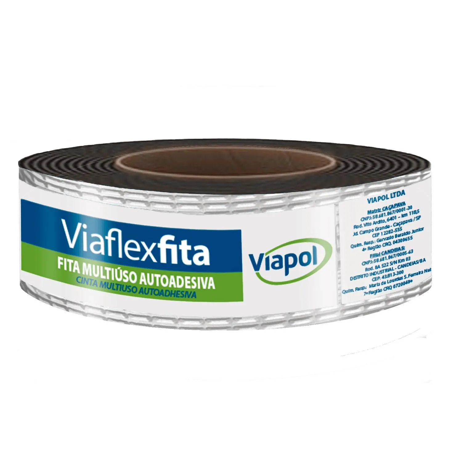 Viaflex Fita é uma fita impermeável auto-adesiva composta de uma camada de adesivo asfáltico, recoberta com uma lâmina de alumínio flexível e protegida por um filme plástico. Material de fácil aplicação que proporcionando solução imediata em reparos, goteiras e infiltrações.